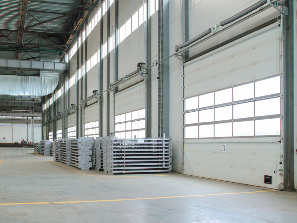 Панорамные секционные ворота, установленные на производственном предприятии. Можайск, Московская обл.