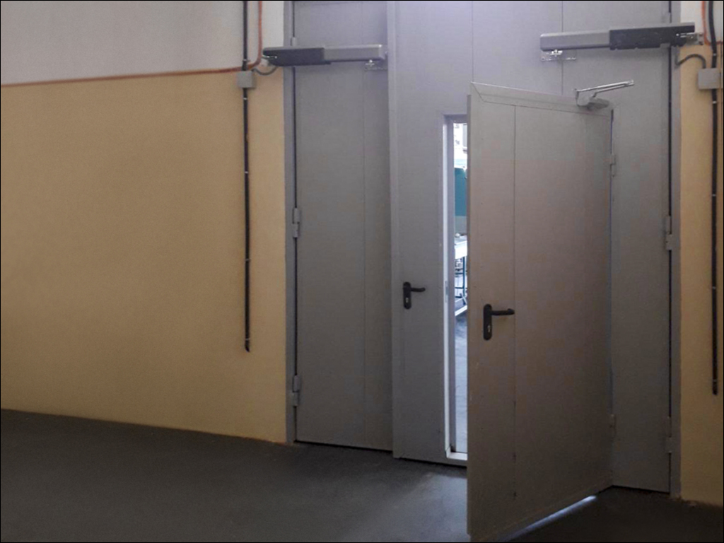 Установка распашных противопожарных ворот в производственном помещении