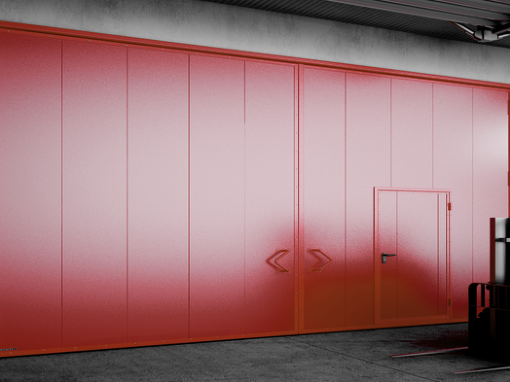 Установка распашных противопожарных ворот в складском помещении