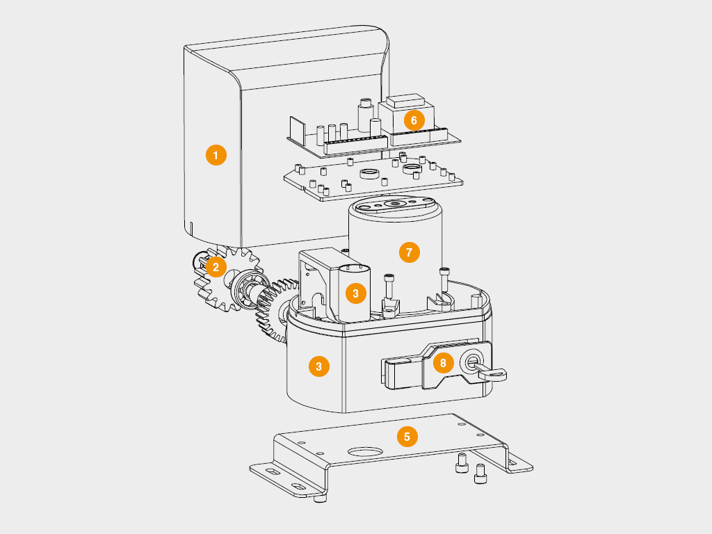 Электропривод SLIDING имеет надежное крепление к монтажному основанию, которое поставляется в комплекте