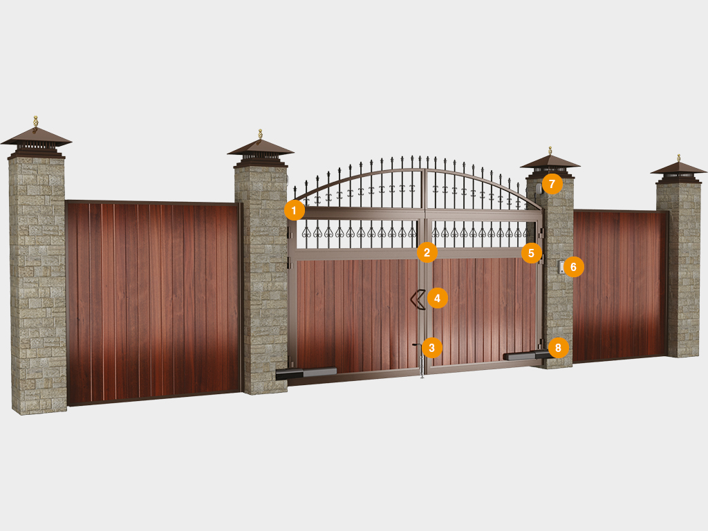 • 2 Технологические просветы между створками ворот, а также между крепежными столбами и створками закрываются специальным профилем.