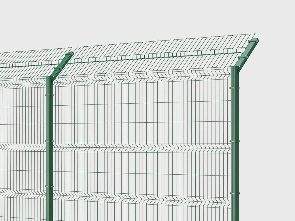 Установка наклонной секции применяется при ограждении режимных объектов и зон высокого риска. Наклонные секции обеспечивают дополнительную защиту от несанкционированного проникновения на охраняемую территорию.